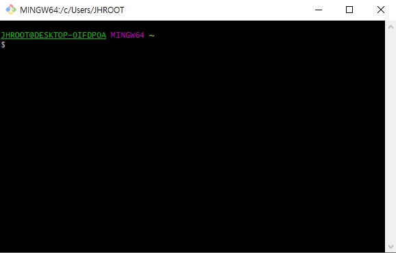 Git Bash 를 구동하면 터미널 창이 열립니다.