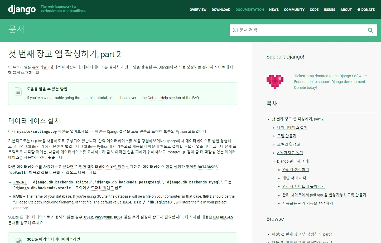 docs.djangoproject.com/ko/3.1/intro/tutorial02/